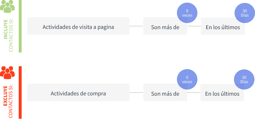 Este segmento agrupa a todos los contactos que han visitado la página al menos 10 veces en los últimos 30 días pero no se han decidido a comprar.