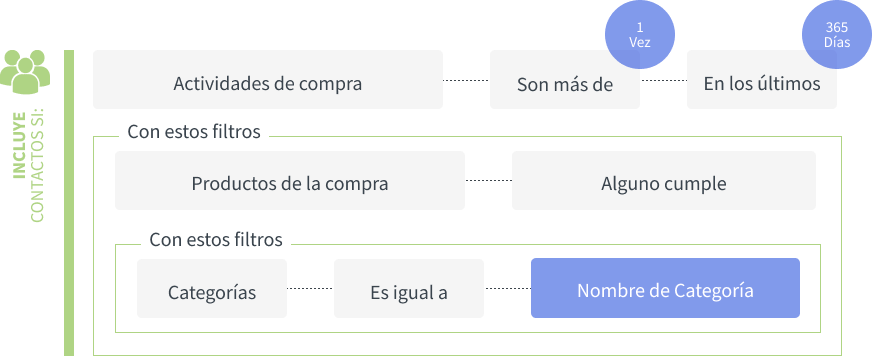 Este segmento agrupa a todos los contactos que han comprado al menos dos veces durante los últimos 365 días productos pertenecientes a una categoría concreta.