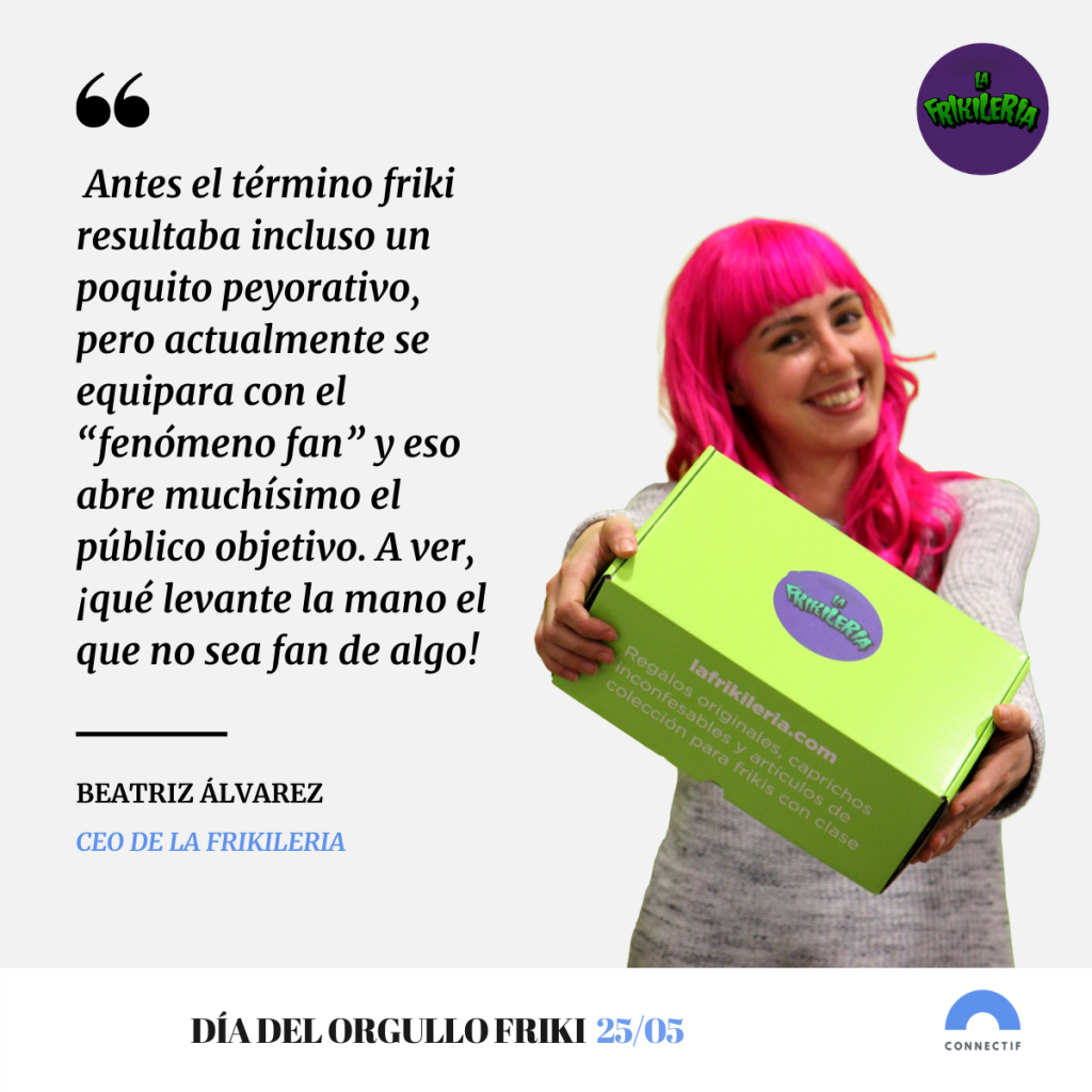 Decidimos realizar una entrevista a Beatriz Álvarez, fundadora de “La Frikilería” empresa definida como lugar en el que todo el mundo puede encontrar algo que le guste sin ser juzgado por su nivel de frikismo. Actualmente se encuentra posicionada en el puesto 45 del ranking de las 50 tiendas de moda online más populares de España en 2020 por Marketing4eCommerce