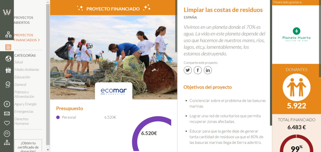 Ahora por ejemplo estamos colaborando con un proyecto para limpiar las costas de residuos y llevamos recaudados más de 6.000€