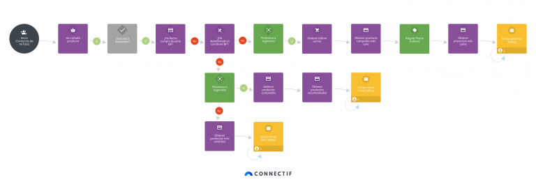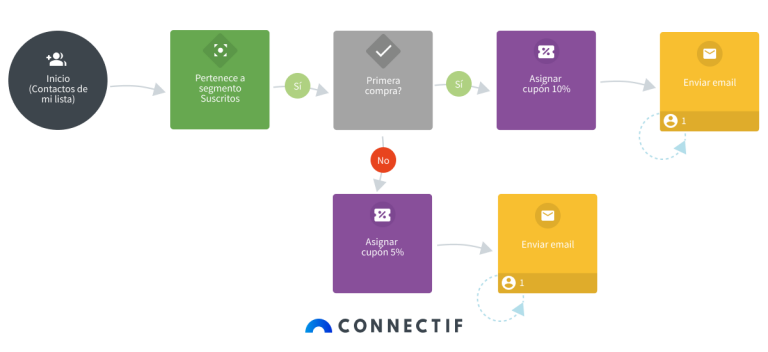 - Una vez definido el segmento, el workflow distingue entre nuevos compradores o compradores recurrentes.