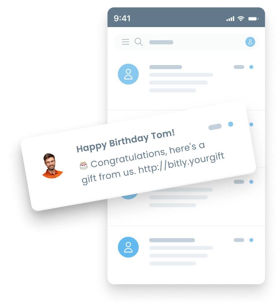 Aumenta el engagement y las ventas con mensajes SMS personalizados -el tipo de mensaje que más se abre- en la palma de su mano.