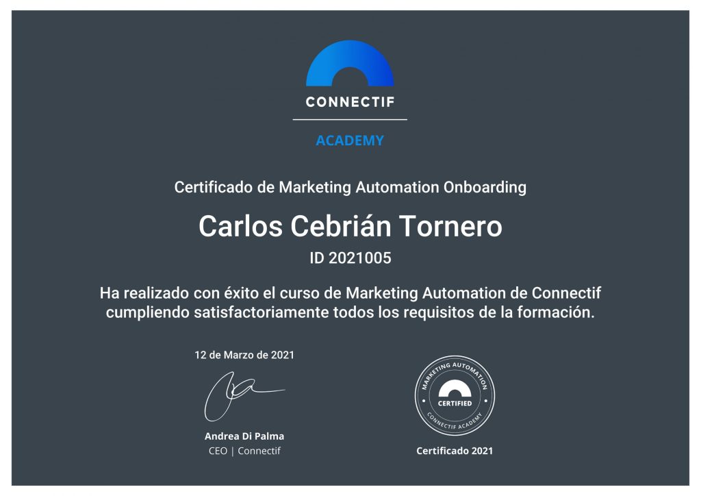 Certificado de Marketing Automation – Carlos Cebrián Tornero