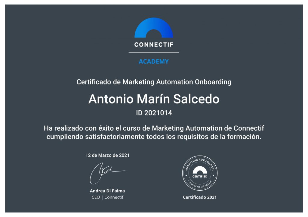 Certificado de Marketing Automation – Antonio Marín Salcedo