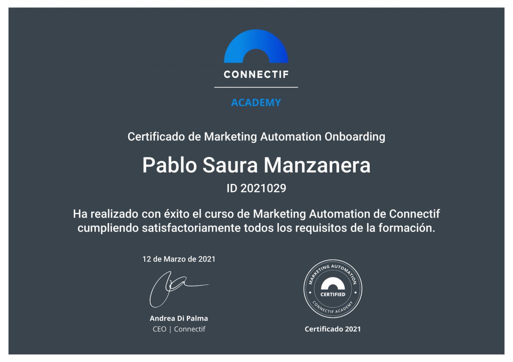 Certificado de Marketing Automation – Pablo Saura Manzanera