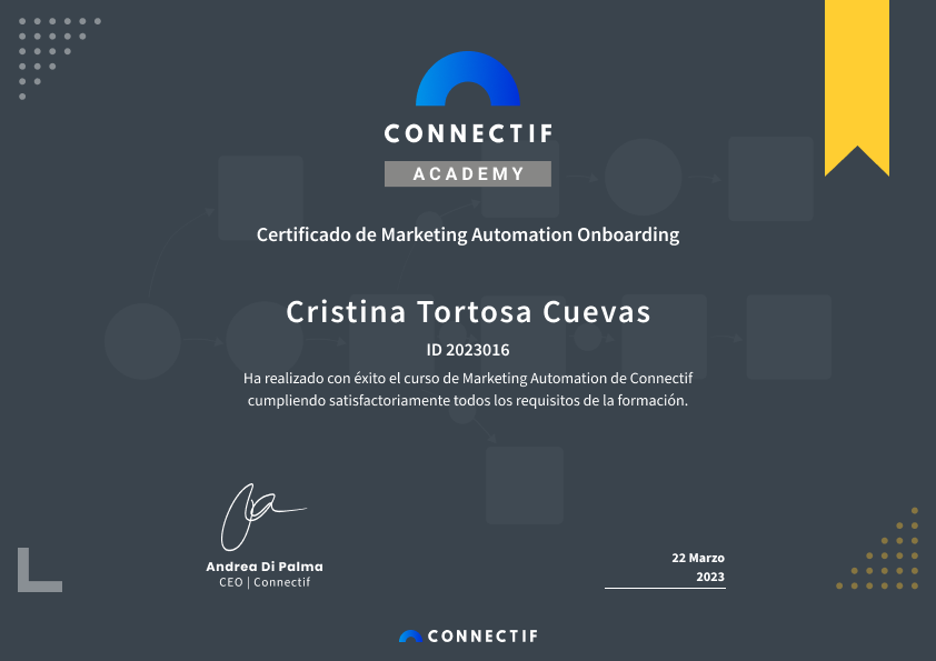 Certificado de Marketing Automation – Cristina Tortosa Cuevas