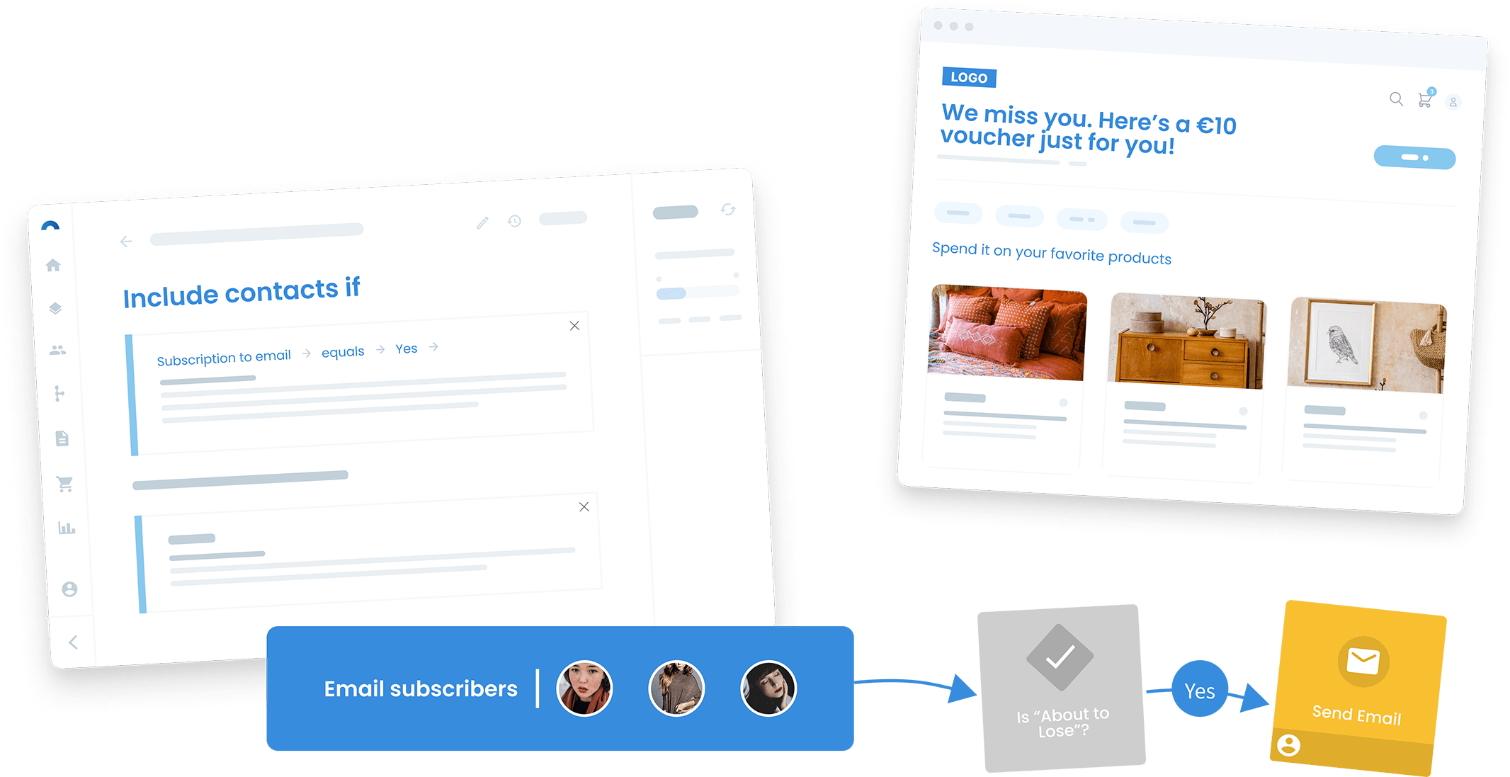 Looking to cherish the customers who bring the most value to your business? Or perhaps you want to take extra care of those that you’re about to lose? Export different audience segments and synchronize them with Facebook, Instagram, Google Ads, TikTok and more to maximize ROAS.