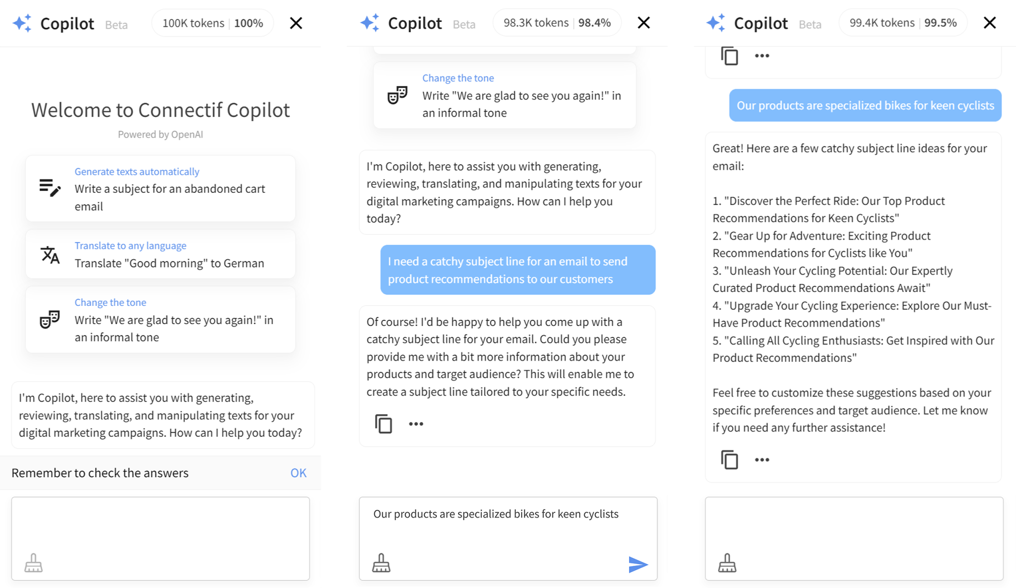 Copilot is our smart assistant that can help marketers out with content creation, personalized messaging, and translations powered by OpenAI so they can save time without skimping on quality content.