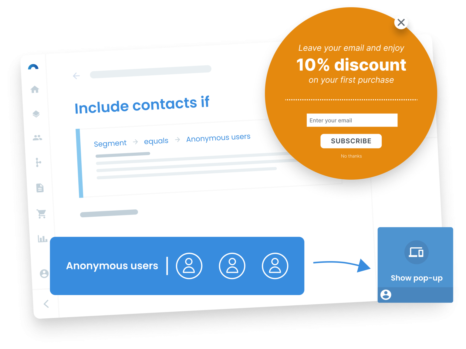 Want to connect with customers beyond your website? Automate content on your web page that encourages visitors to subscribe to your channels and target them with personalized content based on historical customer data. Identify your most valuable customers and target audiences with similar characteristics to maintain a high-quality subscriber base for newsletters, push notifications and more.