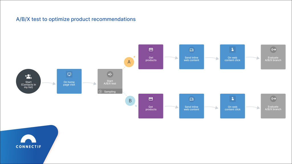 Although Connectif is primarily recognised as a no-code marketing automation platform for data-driven marketers, the testing capacity available in our platform is definitely worth checking out! With access to a wealth of customer and channel data, the sky truly is the limit when it comes to optimizing your marketing strategies or trying something new with Connectif.