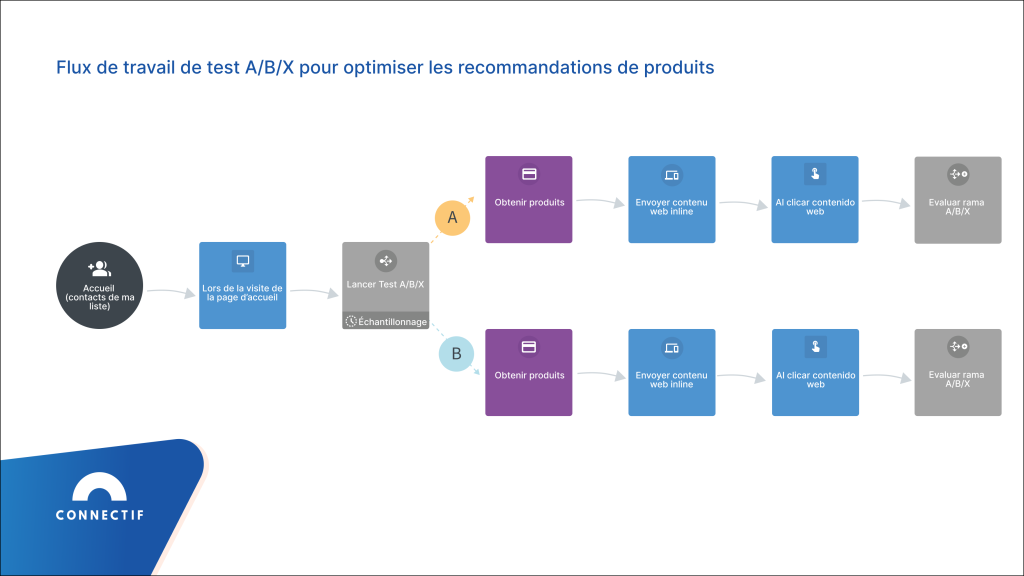 Vous souhaitez commencer avec vos propres stratégies d’expérimentation ? Continuez à lire pour trouver de l’inspiration sur les tests que vous pouvez mettre en place rapidement et facilement avec Connectif.
