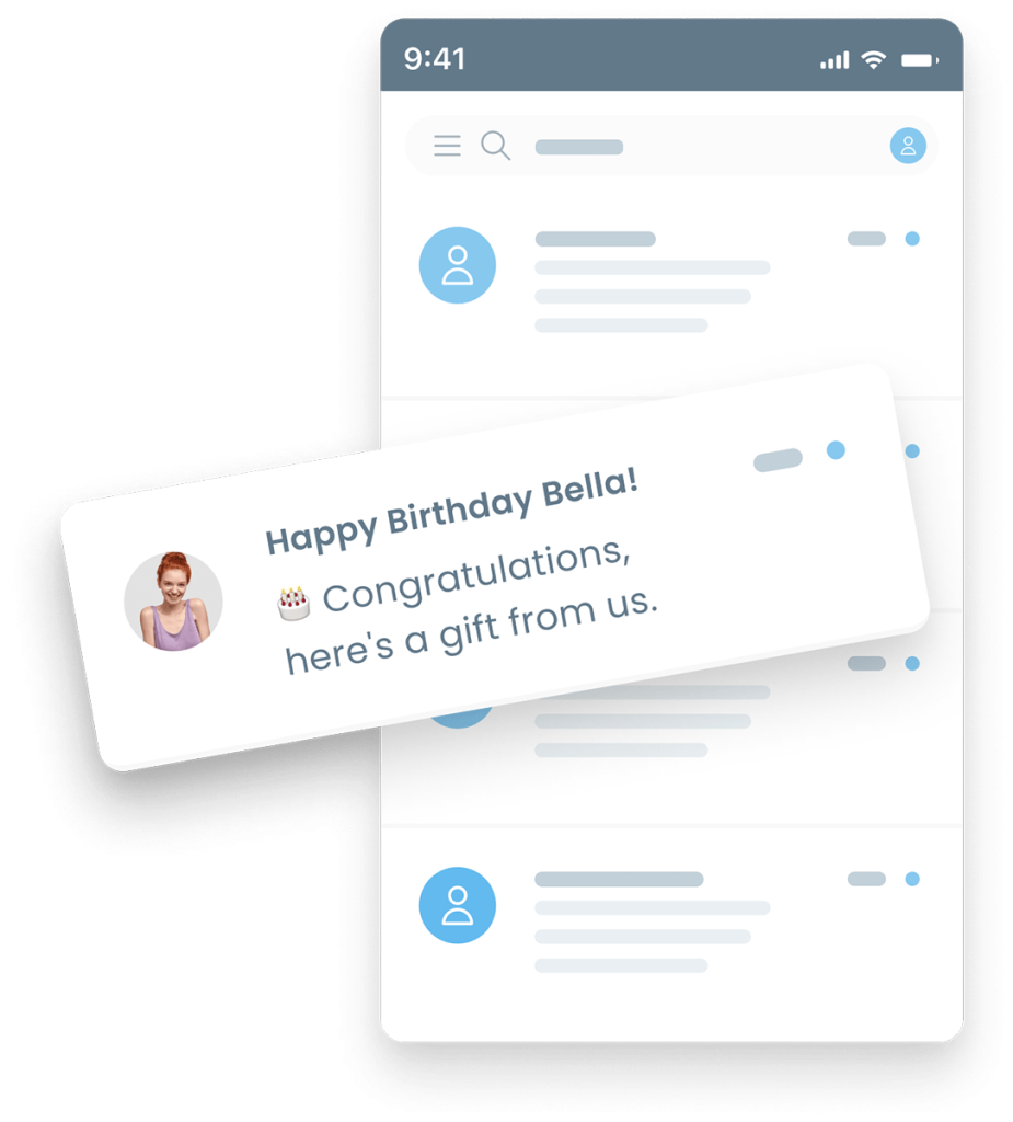 - Fai decollare l’engagement dei tuoi clienti con il potere della personalizzazione. Sfrutta i dati per stabilire una connessione più profonda, inviando messaggi SMS su misura che faranno sentire ciascun cliente al centro dell’universo.